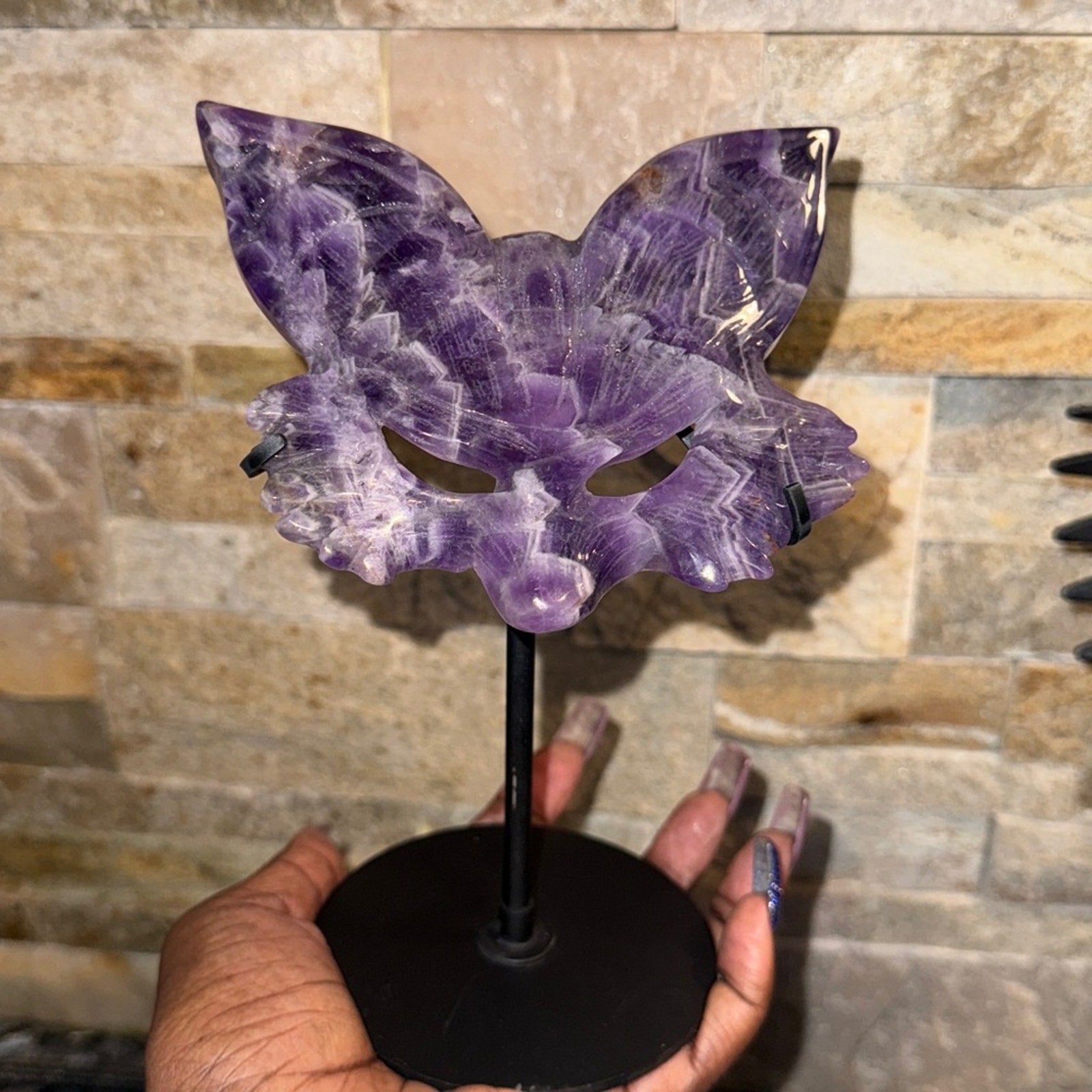 Dream Amethyst Fox Mask on black stand FREE SHIPPING