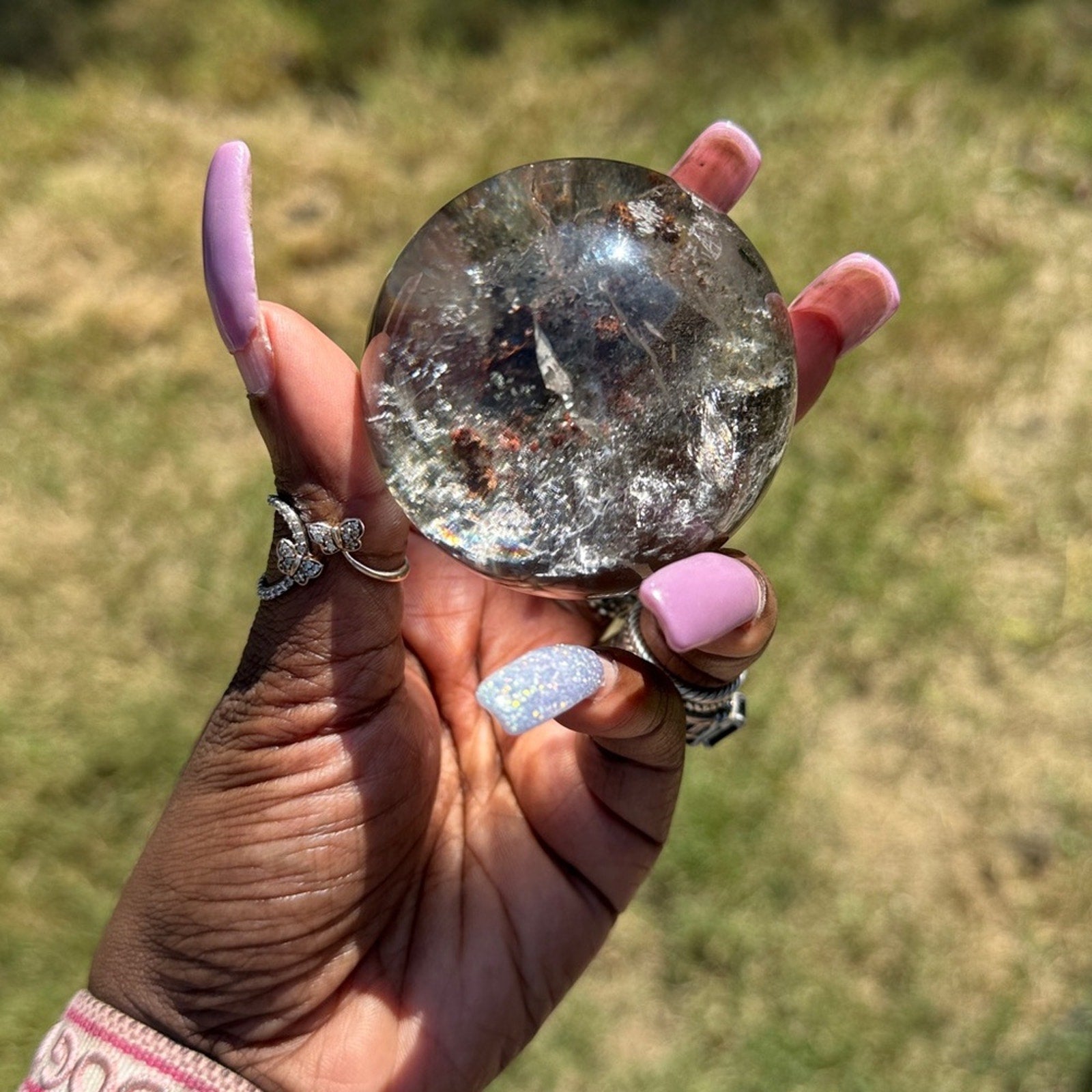 Beautiful and super clear Lodolite Garden Quartz crystal sphere. Perfect for decor or meditation. 🌹🌹