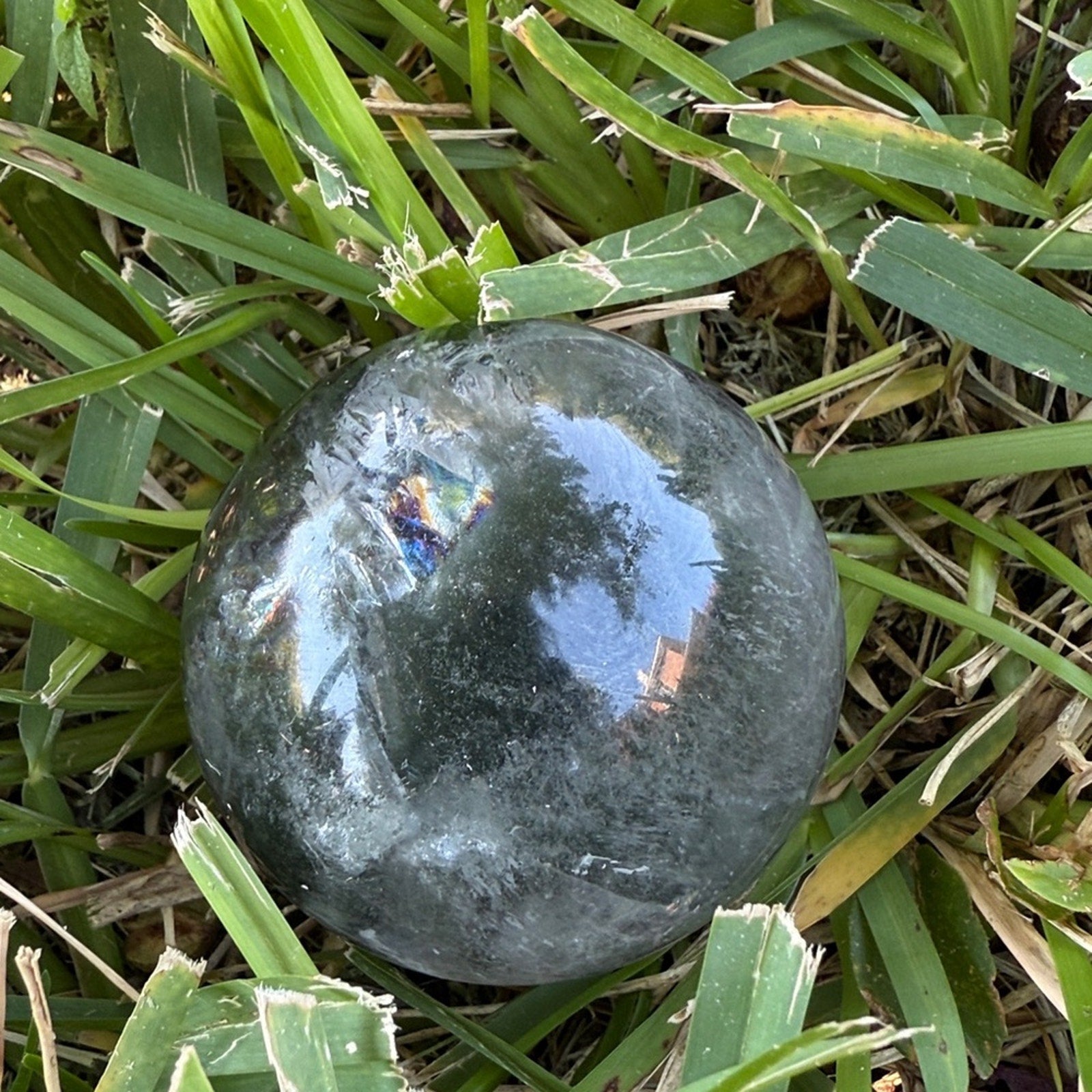 Beautiful and super clear Lodolite Garden Quartz crystal sphere. Perfect for decor or meditation.