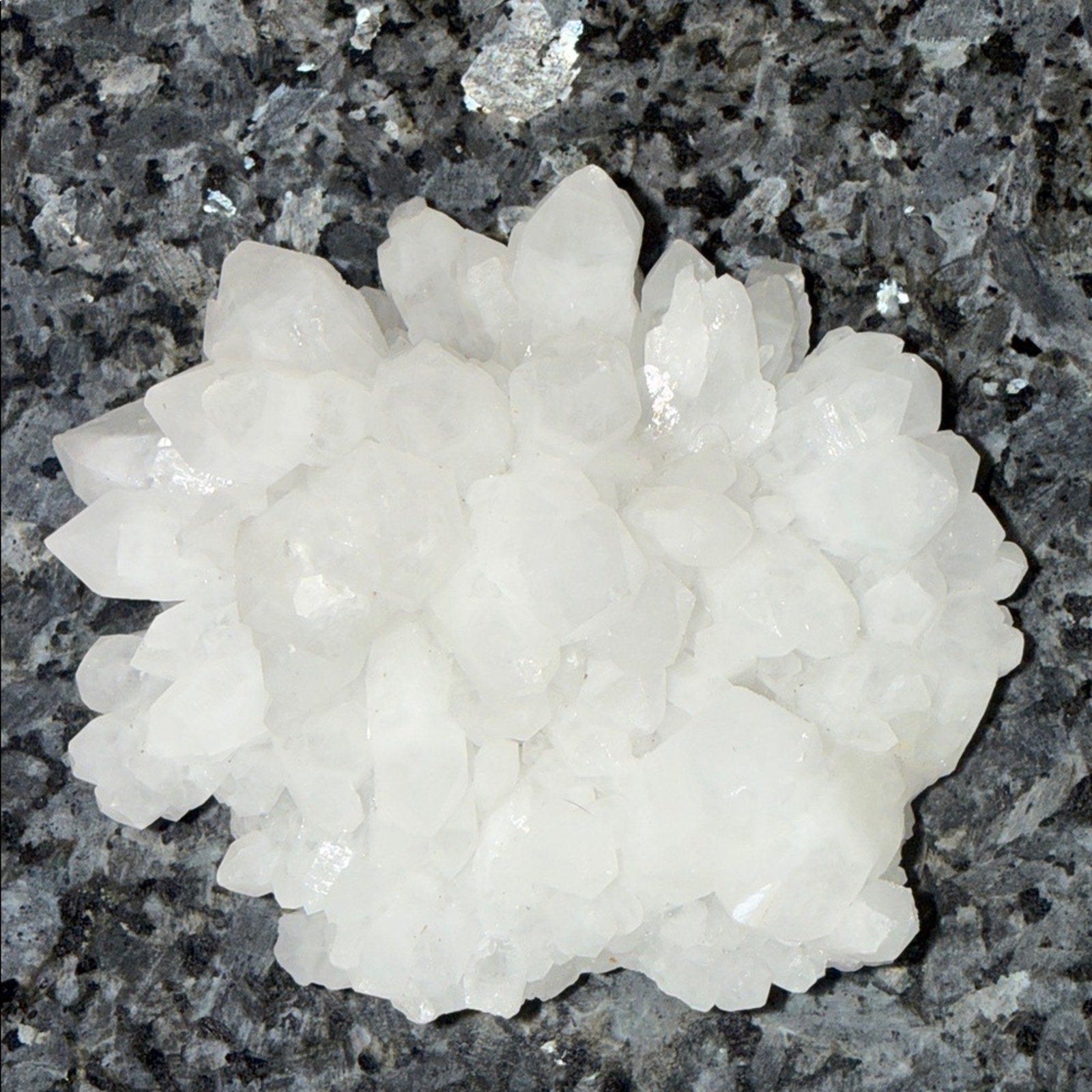 Beautiful collection of natural quartz and calcite crystal clusters in one specimen from India. Each piece sparkles with unique formations. Perfect for collectors or as decorative pieces. Approximately 5” long at widest part and 4” high.