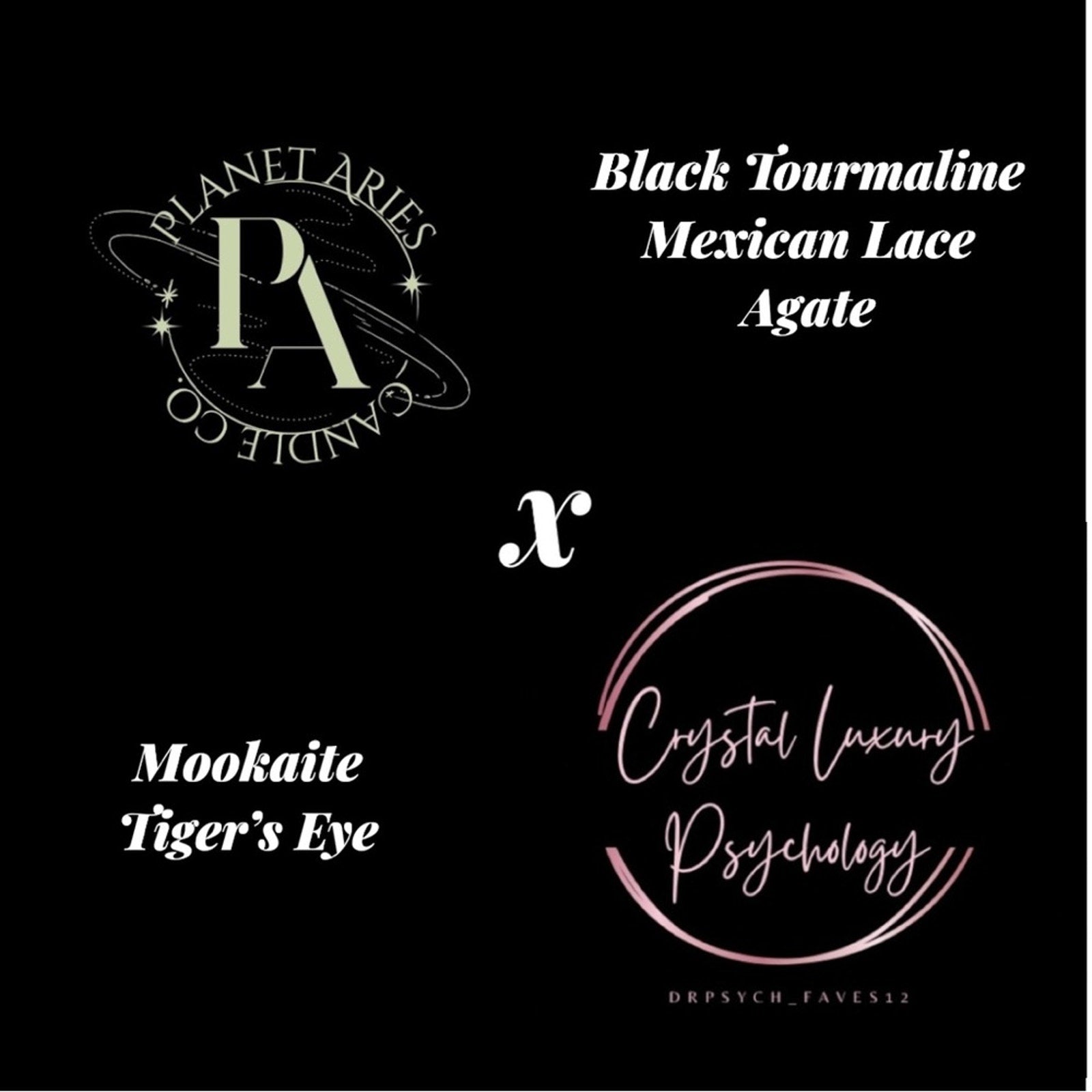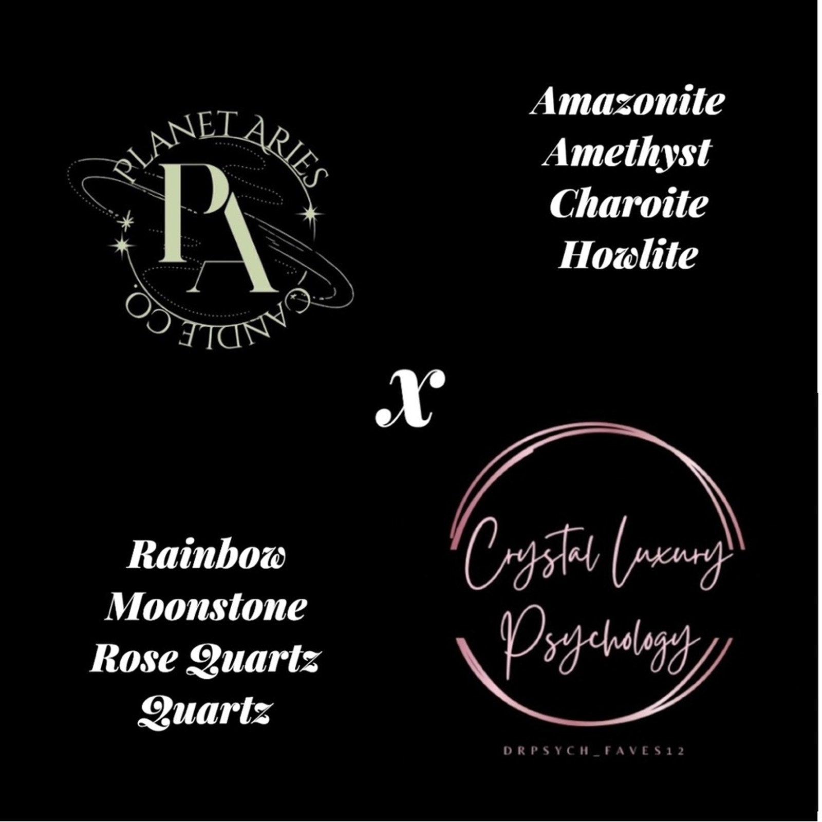 Enjoy this candle and crystal collaboration between Planetaries Candle Company 🖤🖤 and DrPsych_Faves12’s Crystal Luxury Psychology 🌹🌹created to support Cancer & Mental Health awareness and research.
